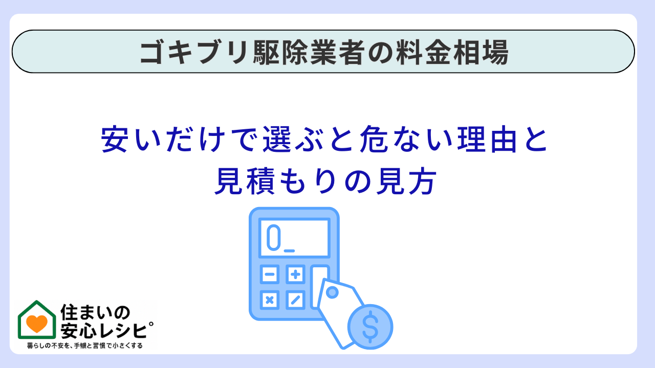 ゴキブリ駆除の料金は、単なる“薬剤の値段”ではなく、調査・施工設計・施工範囲・再訪・保証・封鎖提案など、再発率に直結する要素の集合です。だからこそ、安いだけで選ぶと危ないのは、再発して結局二度三度と支払う可能性があるからです。