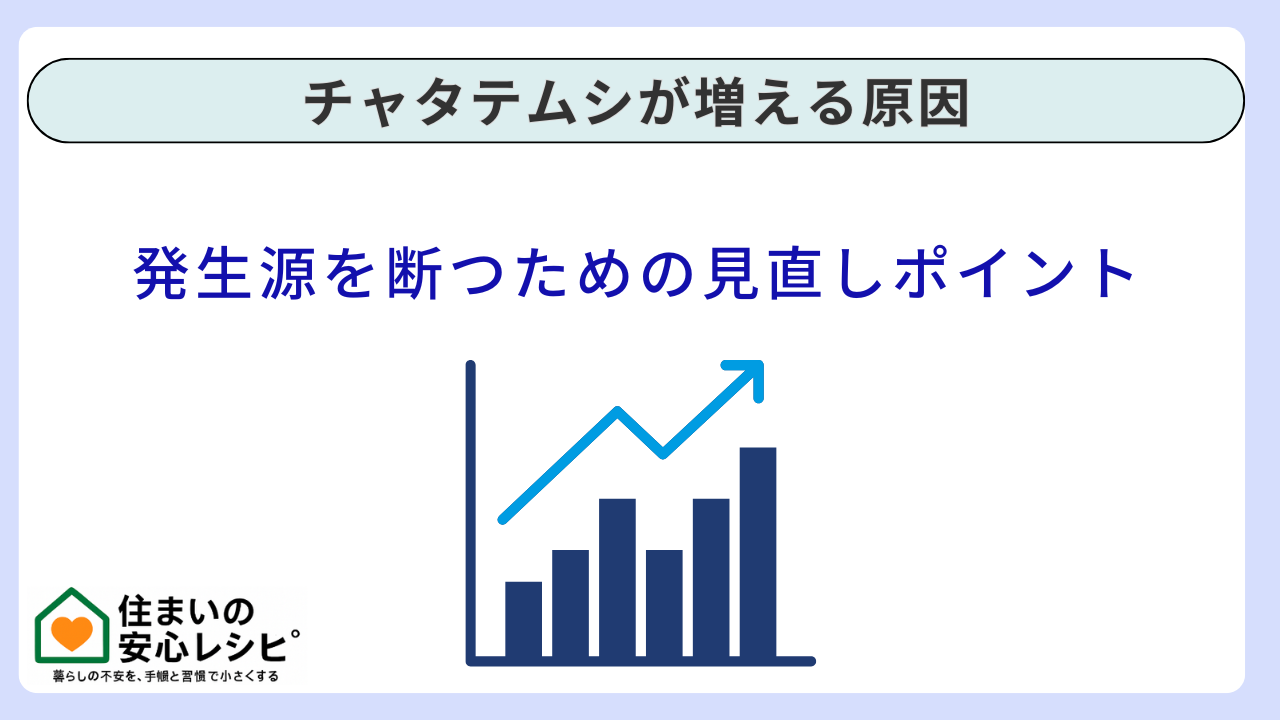 チャタテムシが増える原因は、生活の見直しで改善するものと、建物側の問題でしか改善しないものに分かれます。ここを間違えると、努力が報われにくいです。
