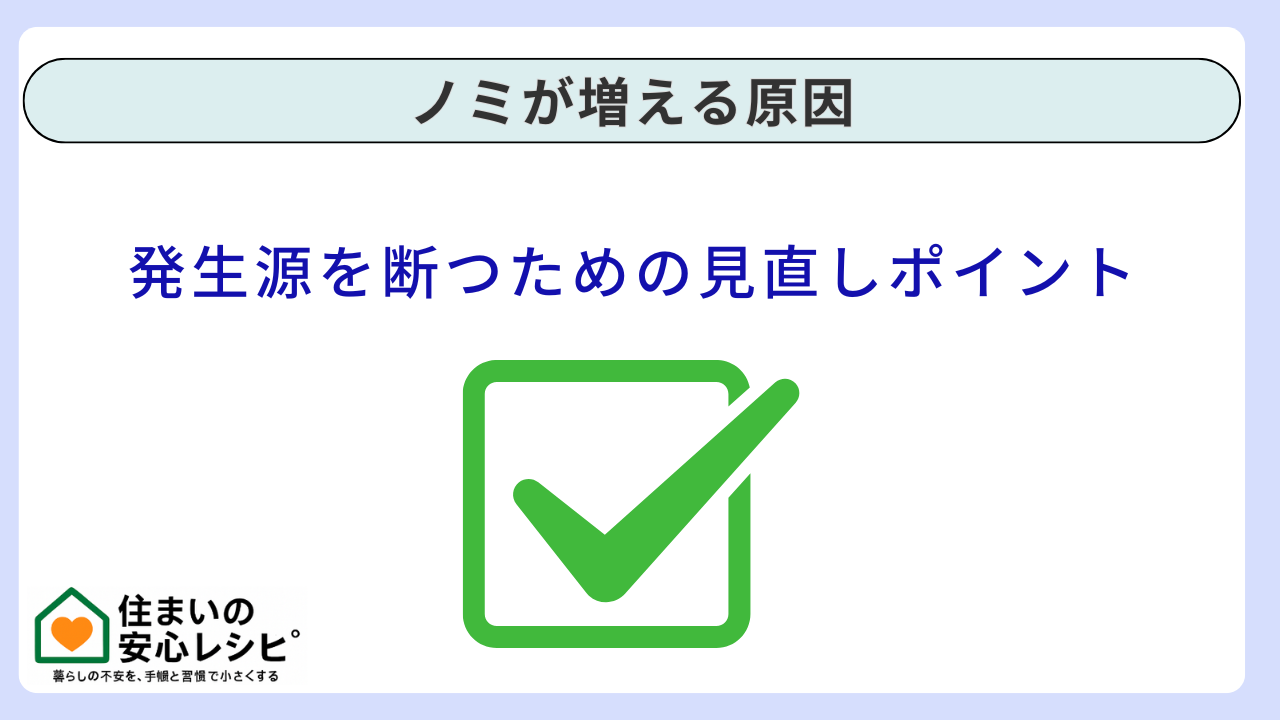 ここからが本題です。ノミが増えたと感じるとき、原因は大きく分けて「持ち込み」「室内育成」「再侵入」「見落とし」の4種類に整理できます。多くのケースは複合要因なので、ひとつずつ可能性を潰し、対策の優先順位を決めるのが最も確実です。