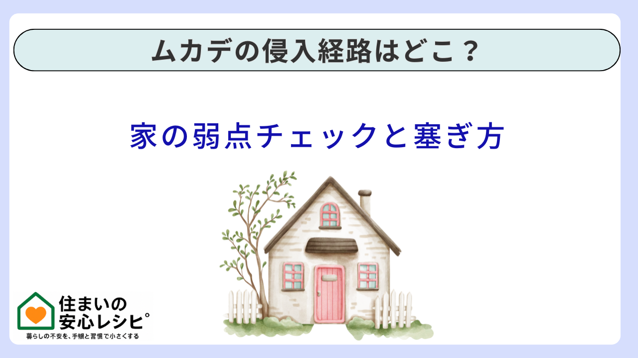 ムカデの侵入は、運だけの話ではありません。第一に、ムカデは湿気・暗さ・エサが揃う場所を好み、家の外周と水回りはその条件が重なりやすい。第二に、侵入経路はドア下・サッシ・配管貫通部・換気口など、家の構造上の弱点に集中しやすい。第三に、薬剤だけに頼ると出現場所が変わる可能性があり、根本は“物理的に塞ぐ”ことです。
