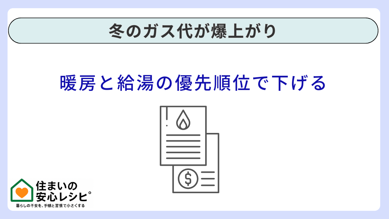 しかも冬のガス代は、「節約しよう」と思った瞬間から難易度が上がります。なぜなら、寒さがつらいので暖房を切りにくい。一方で、お湯を使わないと生活が回らない。つまり、どちらも必要不可欠で、削る順番を間違えると、我慢したのに下がらないという最悪の結果になりやすいからです。