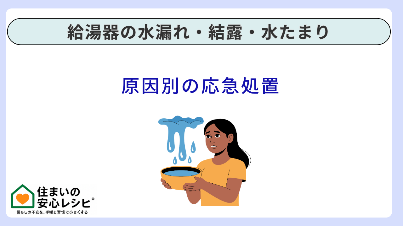 給湯器の水漏れ・結露・水たまりは、見た目が似ているからこそ、不安が増幅します。しかし手順を踏めば、やることは整理できます。