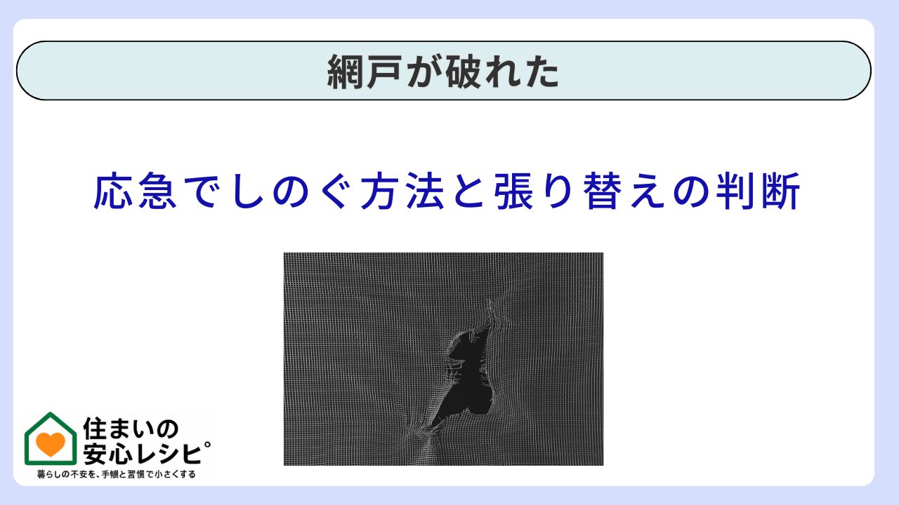 気づいたら網戸に穴が空いていた。風を入れたいのに、そこから虫が入ると思うと窓が開けられない。小さな子どもがいる、ペットがいる、あるいは夜に明かりをつけると虫が寄る地域だと、なおさら焦ります。「今すぐ何とかしたい。でも、下手に触って網がヨレたらどうしよう」「応急処置で済むのか、張り替えが必要なのか、判断がつかない」。その気持ち、痛いほどわかります。