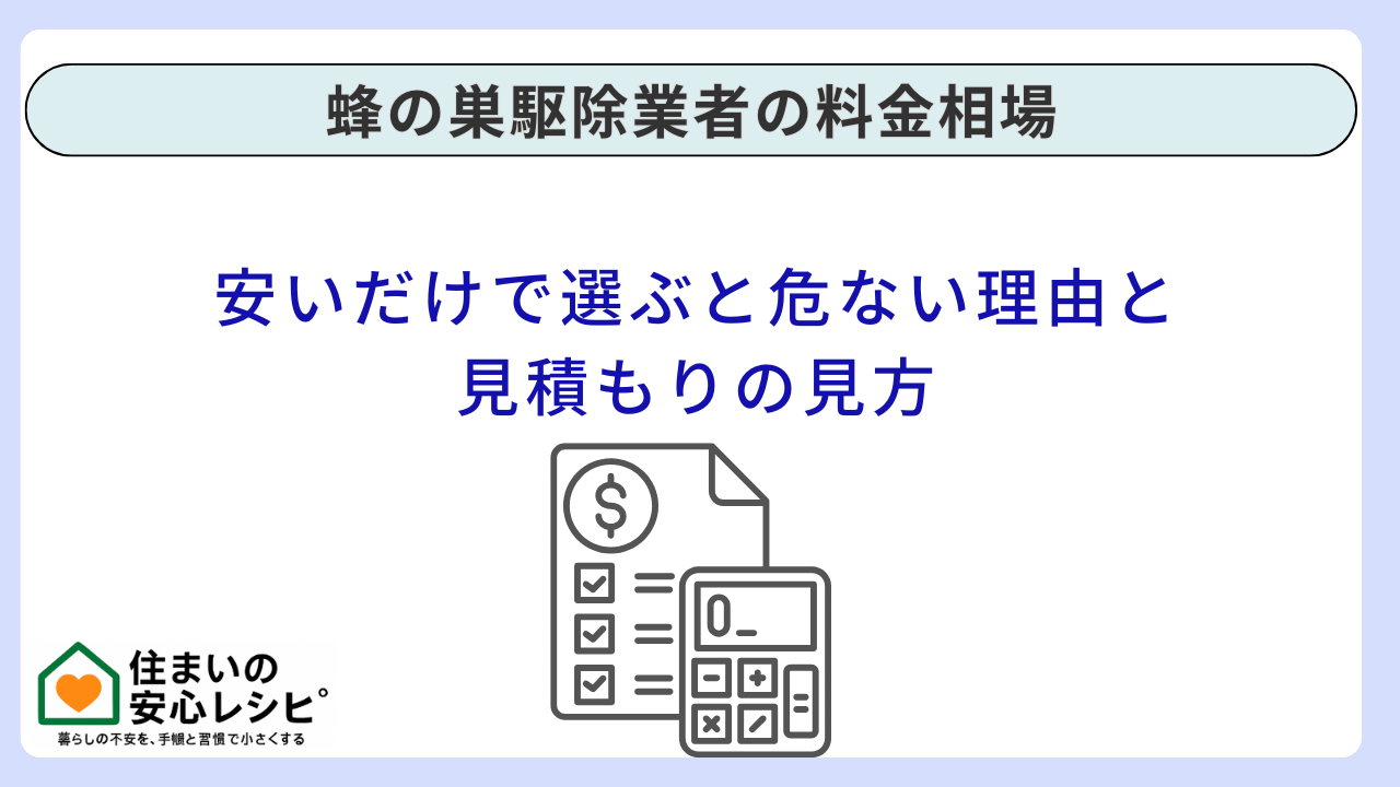 しかも蜂は、ただ不快なだけの害虫ではありません。種類や巣の場所、季節によっては、刺傷(ししょう)事故が命に関わる可能性もあります。だからこそ、料金相場を知ることは大事ですが、もっと大事なのは「どんな条件で金額が跳ねるのか」「安い業者を選んだ結果、何が起きやすいのか」を理解することです。